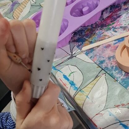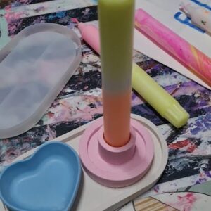 Kaarsen dippen is helemaal hip op dit moment. Tijdens dit feestje gaan we een schaaltje, kaarsenstandaard en een houder voor kaartjes/foto’s maken met gietpoeder (een soort gips), water en kleurstof. Ook mag je 4 kaarsen dippen/marmeren en beschilderen. We gaan zelf de verhoudingen afwegen met een weegschaal, mengen en gieten. Er zijn verschillende mallen waar je uit kunt kiezen. Aan het einde van het feestje kunnen alle vormen, die zijn gegoten, uit de mal. Dit feestje is geschikt voor kinderen vanaf 10 jaar.